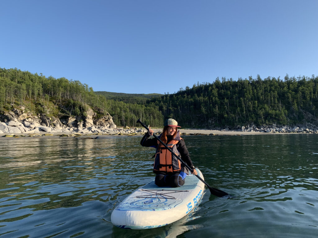 ⠀⠀⠀В первый вечер, из-за отлива, мы вынуждены были отплыть на мыс Врангеля (основная бухта, где обитают киты) поздно вечером. Очень быстро стемнело и нам предстояло 4 часа плыть практически в темноте. Было довольно страшно, особенно в момент сильной качки. И вдруг кто-то заметил свечение, мы стали внимательно всматриваться в воду и увидели тысячи ярких огней. В основном огни были в пене, которую создавал катер. В некоторых местах огней было столько, как будто мы плывем по звездному небу. Я никогда не видела ничего подобного. Это был планктон, свечение которого я видела только в книжках. Сфотографировать было не возможно, мы были все мокрые от волн и в тысяче слоёв одежды, катер качало и достать телефон или фотоаппарат было нереально. Но наконец-то мы доплыли до бухты. Наступило первое утро. Ты просыпаешься от необычного звука, дыхания моря. В бухту заплывают киты и ты слышишь их дыхание. 5 утра подъем. Надеваешь гидрокостюм и заплываешь на сапе (доска с веслом) в море. Оно дико холодное, вокруг туман, ты плывешь по морской глади и чувствуешь, как в воде все движется. Встречаешь рассвет, на горизонте встает огненный шар солнца и освещает огромные валуны на пляже. Вода становится кристально прозрачной, на дне видно каждый камушек, несмотря на значительную глубину. Под тобой открывается целый фантастический мир: по дну разгуливают крабы, огромные медузы лениво плавают и переливаются разными цветами, если приглядеться, то можно увидеть прозрачную рыбу-иглу, время от времени проплывают большие косяки разных рыб. И тут у меня перехватывает дыхание и я вижу метрах в 10 медленно поднимается над водой и зависает над поверхностью черный горб. Это кит. И он не один. Буквально на небольшом расстоянии начинают подниматься над водой и другие киты. Подплываешь к ним ближе, они уходят под воду и опускаются на дно. Могут не подниматься минут 10 Ты просто выжидаешь. Ощущения непередаваемые. Я часами сидела на сапе и наблюдала, пока дико не замерзала. Приходилось плыть обратно. Хорошо, что на острове есть баня.Нам не повезло с погодой. На севере она крайне непредсказуема. Был тайфун накануне нашего приезда, который мы пережидали в Анюйском заповеднике, где в лесах водятся тигры. Киты в шторм уплывают из бухт.