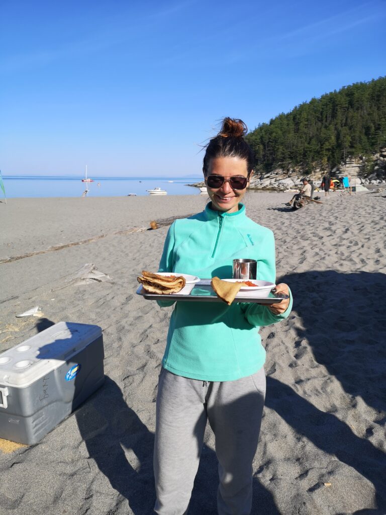 Помимо рыбы, здесь также можно выловить крабов, морских ежей . Мы сами ходили собирать мидии во время отлива и готовили их на ужин, это невероятно вкусно. Каждый день мы ели рыбу в разных вариантах приготовления: стейки, соленую, жареную, копченую. И конечно же свежайшая красная икра на завтрак. У нас был свой повар, который радовал нас каждый день изысканными блюдами из морепродуктов. Готовить в таких условиях достаточно сложно, но еда получается в миллион раз вкуснее.