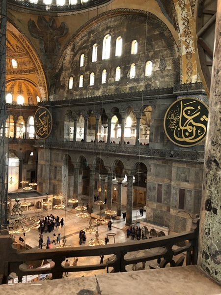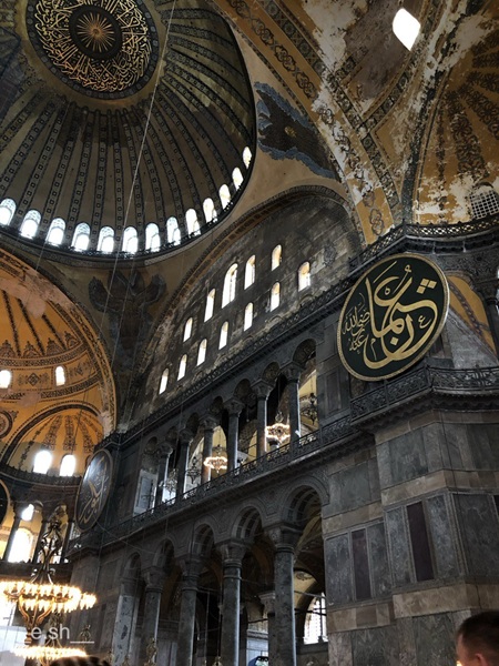 Её купол диаметром 31 м – инженерный шедевр VI века: кажется, что он парит в воздухе, а свет, льющийся сквозь 40 окон у основания, создаёт ощущение небесного свода. Внутри слились стили и смыслы разных эпох: византийские мозаики, османские михраб и античные мраморные колонны.