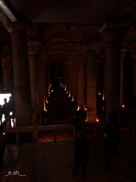Здесь вас встретят колонны из разных эпох, часть из которых привезена из античных храмов, у некоторых основания выполнены в виде голов Медузы. Вода с зеркальной поверхностью, а отражающиеся в ней колонны создают иллюзию бесконечного лабиринта.